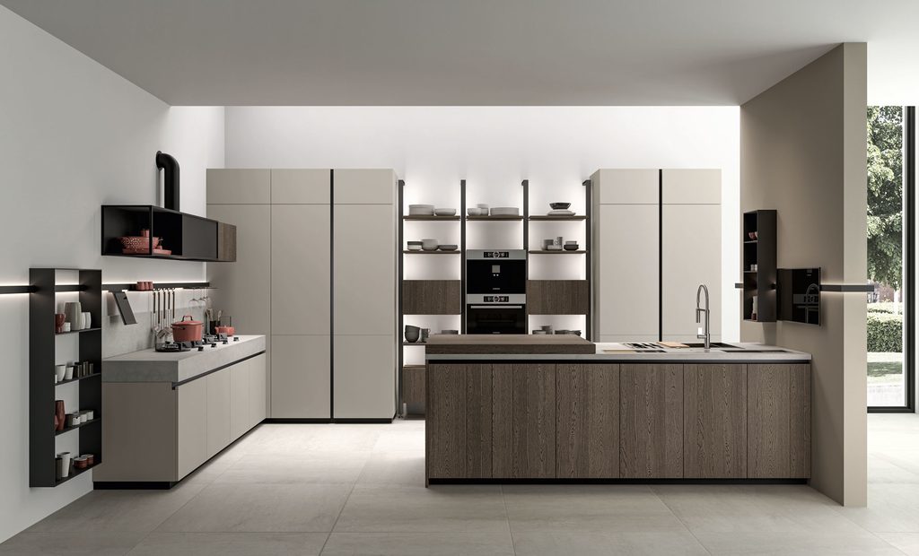 Flavour ist eine zeitgemäße Küche, die dank der verschiedenen Fronten und der vielfältigen Ausführungen nach verschiedenen Stilen interpretiert werden kann. Auf diese Weise verändern Flavour-Küchen ihr Aussehen nach dem Ambiente und nehmen eine klassische oder zeitgenössische Form an.