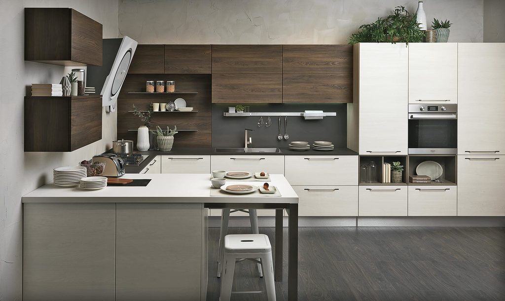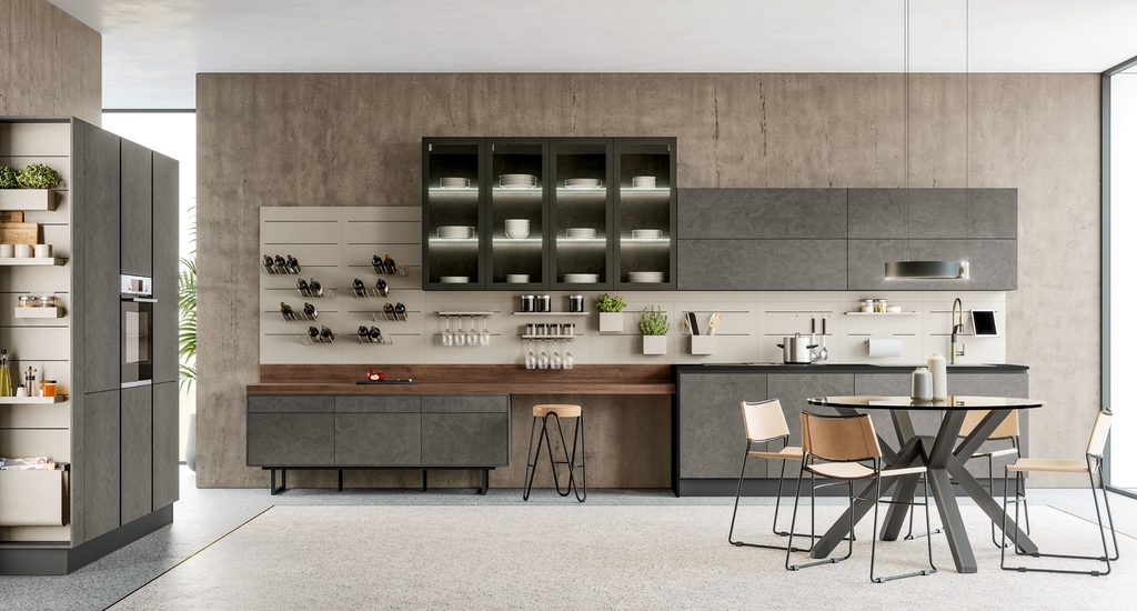 Küchen und Wohnbereich sind so konzipiert, dass Sie eine maximale Anpassungsmöglichkeit bieten können. Die Vielfalt an Kompositionen, Farben und Materialien ermöglicht es, ein komplettes und aufeinander abgestimmtes Ambiente zu generieren.